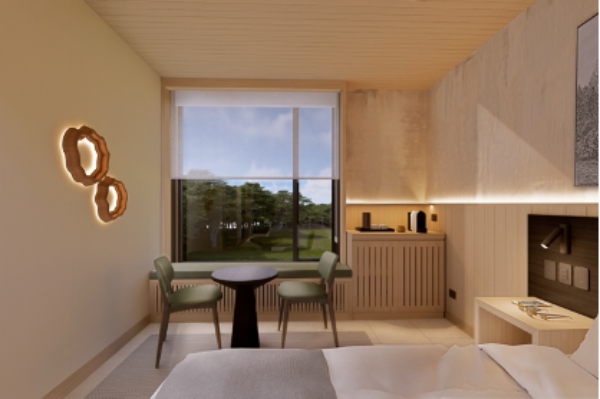 Cada una de las 150 habitaciones de The Cormorant está cuidadosamente diseñada, invitando a los huéspedes a recargar energías antes o después de su viaje. Ofrecen serenas vistas al bosque o al canal Beagle, acercando a los huéspedes a los paisajes que definen esta región. Los interiores lucen cálidos tonos madera y elementos terrosos, creando un ambiente auténtico y relajante. Para fomentar esta conexión, cada habitación incorporará artículos creados por artesanos chilenos, aportando un toque único que celebra la cultura local y regional.